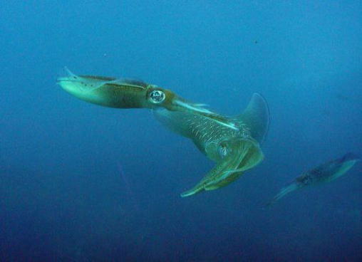 春から夏にかけ多く見ることができるイカで,産卵期はこの海域では4月〜7月で,産卵やハッチアウトなどが観察しやすいのでダイバーに人気があります。イカ釣りで釣られるかわいそうなイカで,ミスイカとも呼ばれています。