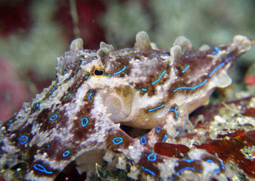 体長は大きくても10cm強にしかならない小さなタコだが体表にあるコバルト色の斑点が非常に美しい。「フグ毒」(テトロドトキシン)を持っていて危険な生物でもある。