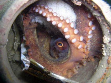 オスが卵を守るシーンや貝殻で周りを囲みマイハウスから目だけだしていたり、ナイトダイビングでは活発に動いていたりとタコは表情豊かでおもしろいです。
