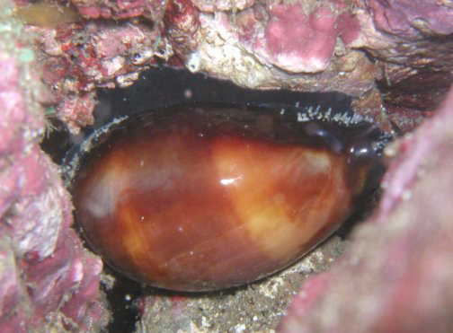 外套膜をかぶり見事に周囲にとけこんでいますが,貝殻がでているとスルーンピカーンと光っています。あの貝の光沢ってすごくきれい。