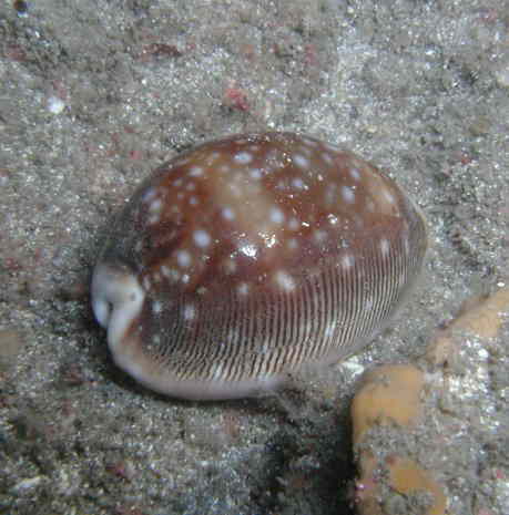冬場から春にかけてトンネル内で見ることができるタカラガイの仲間です。山口県北部が生息域の最北端らしい綺麗な南方系の貝です