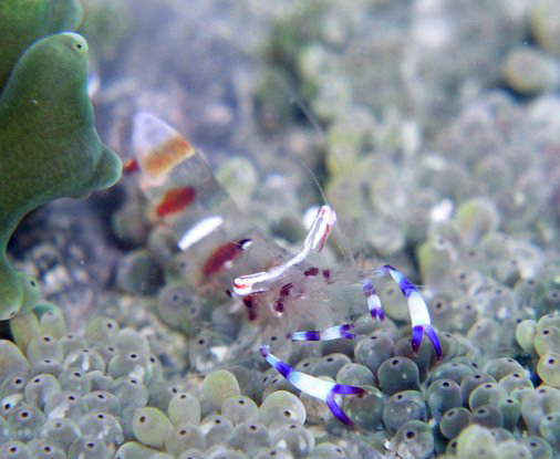 サンゴイソギンチャクやグビジンイソギンチャクについている個体で,特に夏から秋にかけて見かけます。とてもきれいなエビで,派手な色合いから比較的見つけやすいです。基本的にはは「死滅回遊」ですが,まれに越冬する場合もあります。