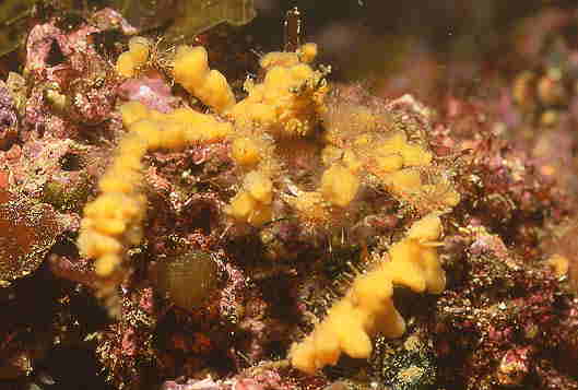 カイメンやヒドロ類などを切り取り,体につけてカモフラージュするおもしろいカニで,ダイバーから人気があります。温帯種ですが,この海域では珍しく見れたらラッキークラス・・・