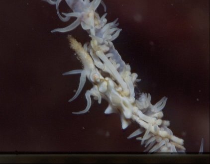 擬態上手のこのカニは,ムチカラマツ類の枝を住処としています。一本一本丁寧に見ていけば見つけられるはず!。ポリプを上手に体につけている個体もあり,なかなかおもしろいです。