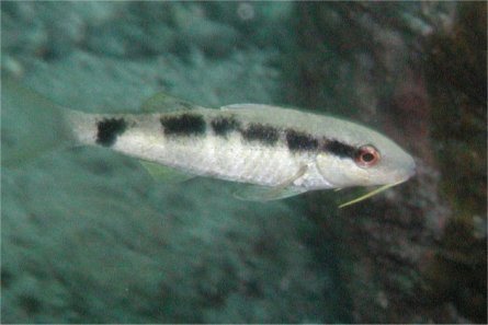 口の下にあるヒゲが実にオジサンっぽい!。他の魚にクリーニングされるとポッと赤くなる姿がかわいらしい。