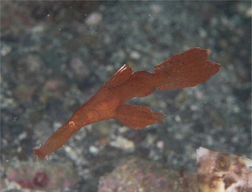 過去一度,秋のナイトダイビングで見かけました。海藻のガレバの上に漂うように浮いていました。あの時の驚きは忘れられません。