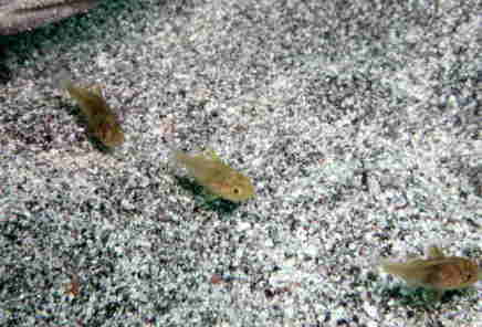 口内保育で有名です。初夏,口いっぱいに卵をほうばったオスが見られ,秋には子供達が見られます。