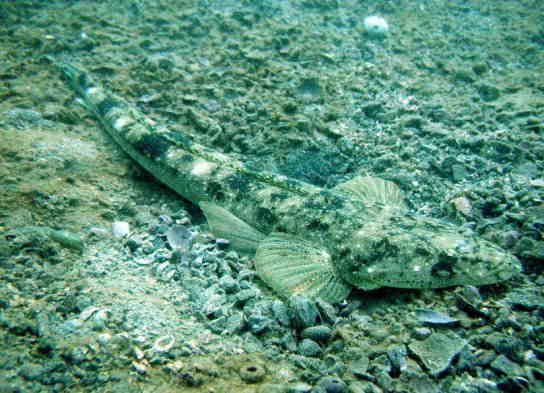 北西の風が吹きはじめ,紫津浦で潜りはじめる頃,ちょこちょこ見ることができます。サイズも大きなもので40cm前後あるので見ごたえがあります。おもしろいのは平べったい顔もそうですが,全長35〜45cmでは性転換し,すべてメスになるということ。不思議だなぁ〜〜!!