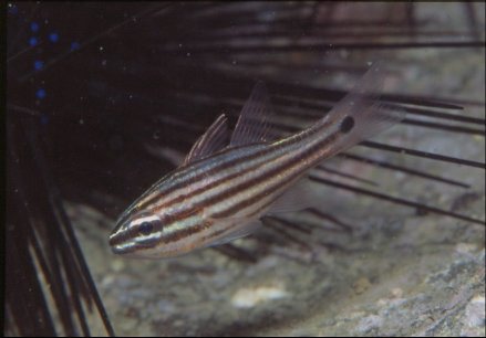 ネンブツダイ同様に,このコスジイシモチも口内保育をします。目までラインが入っていてオシャレです。