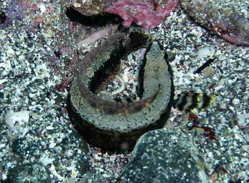 いつものベニツケギンポかなと思って見るとムスジガジでした。青海島では数は少なく背中に入る太い白いラインが特徴です。