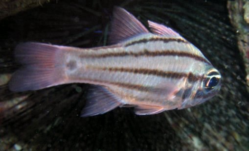コスジイシモチの線の幅をちょっと大きくしたパージョンで,この子も口内保育をします。