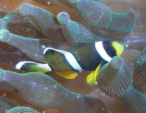 浅場のサンゴイソギンチャクに体調2センチほどのクマノミの幼魚が居ついてくれていました。今年もやって来てくれて有難う!・・・05/09/11 相島オニゼにて