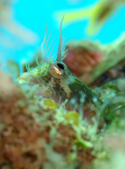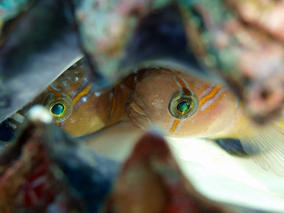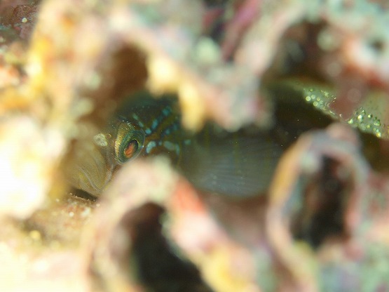 左の瀬ではクチグロキヌタ、イワアナコケギンポ、ベニツケギンポ、コケギンポなど見れました。2本目は洞窟へ行き、久しぶりにミナミハタンポの幼魚を見ることが出来ました。
