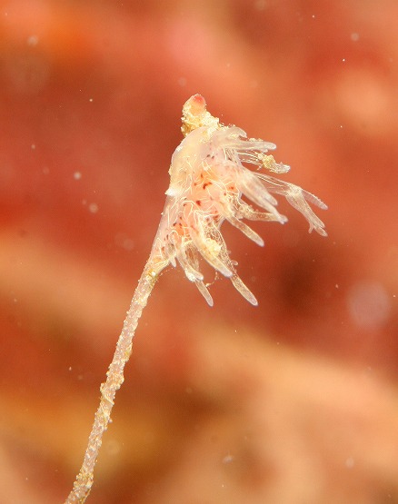 謎の生物もいろいろ見れました。チャガラも今日は絶好調だったようで、adachiさんが求愛や卵保護を撮影されていました。浅場はウミヒドラの仲間にたーくさんのウミウシの仲間がくっついていました。