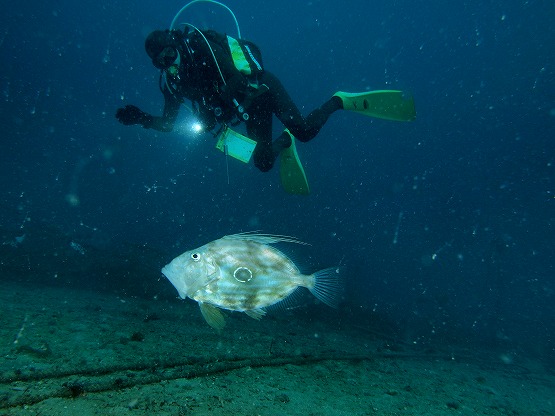 メダカラ、ハツユキダカラ、クチグロキヌタ、オミナエシダカラなど見れました。higasiさんが極小のマトウダイを見つけられてました。