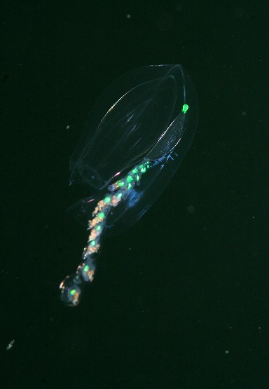 昨日あれだけいた浮遊系は本日かなり減っていましたが、また新しいクラゲが沢山見れました。 特にタマゴフタツクラゲモドキがとっても綺麗でした。しかしながらこれらのクラゲはとっても小さく、傘の大きさは約5mmくらいです。
