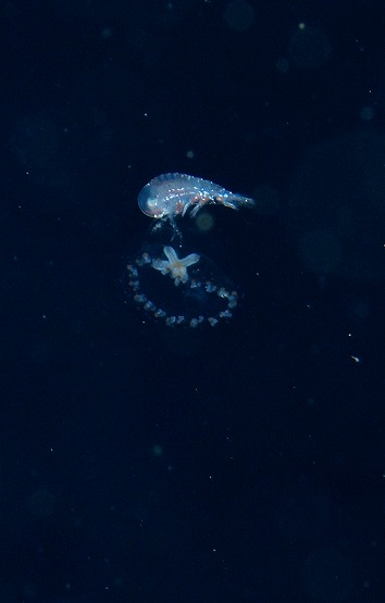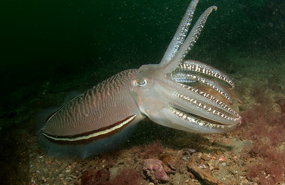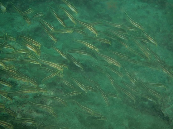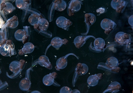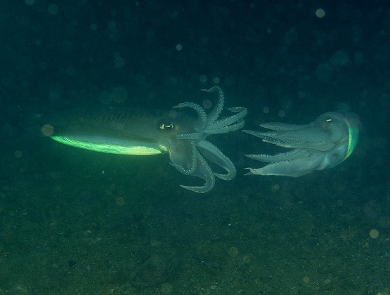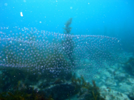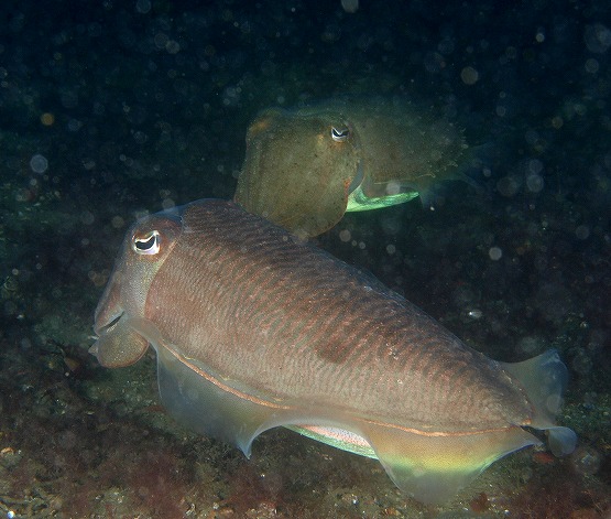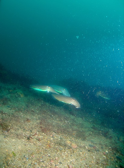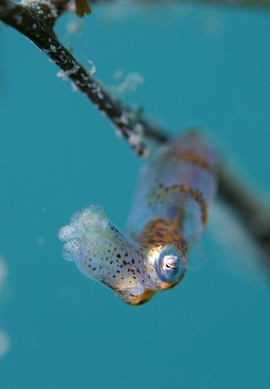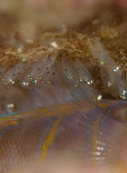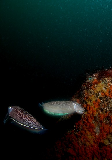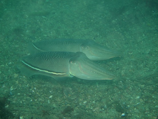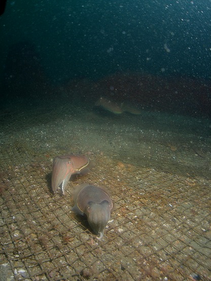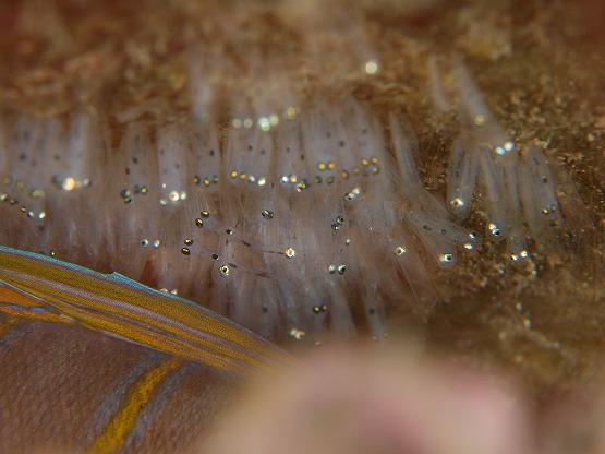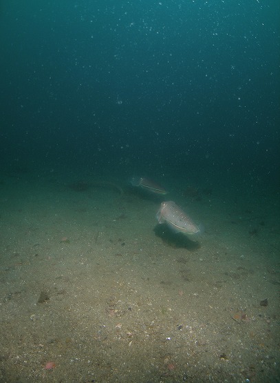 一回産卵すると、しばらく休憩といった感じで、5分に一回産み付けるか産み付けないかというくらいのスローペースでした。交接なんかも狙いたいんですが、コウイカの場合一回一回交接しないので、30分くらい張り付いてもなかなか見ることは出来ません。もうちょっと活発になるとうれしいですねー。
