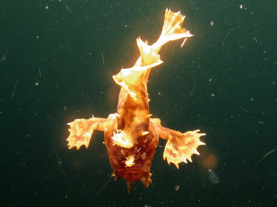 本日も船越は凪。到着して早々、ケンちゃんがなんとアンコウ科の卵塊を発見してくれたので、早速水中撮影。