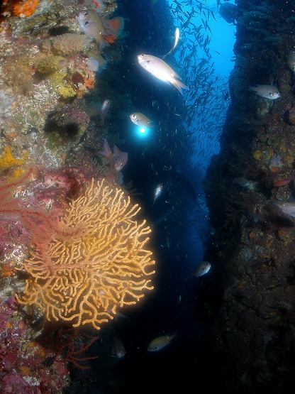 本日はようやくうねりもなくなり、久しぶりに凪の船越です。透明度もまた良くなってきてとっても良好なコンディションでした。1本目はトンネルまで行って来ました。