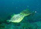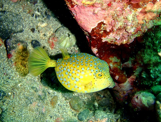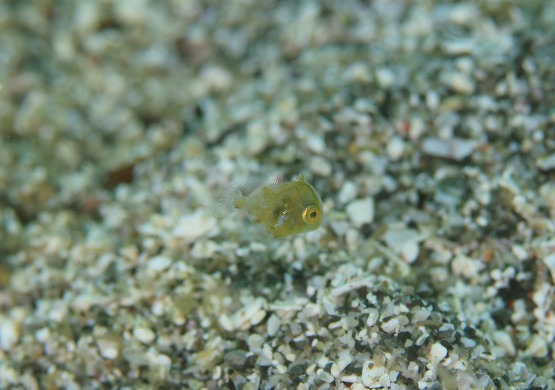 ミナミハコフグの幼魚に似てますが、こっちのほうがかなりレアです。しかもとっても見つけにくいです。ですからこれに出会えた人は超ラッキーなんです。ですから最後の最後で皆さん超刺さっていただきました。ミナミハコフグもヒレの各パーツがちっちゃくて、ヒョコヒョコ泳ぐ姿が可愛いんですが、さらにこいつは動きがおもちゃのような感じで超かわいいです。