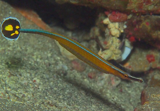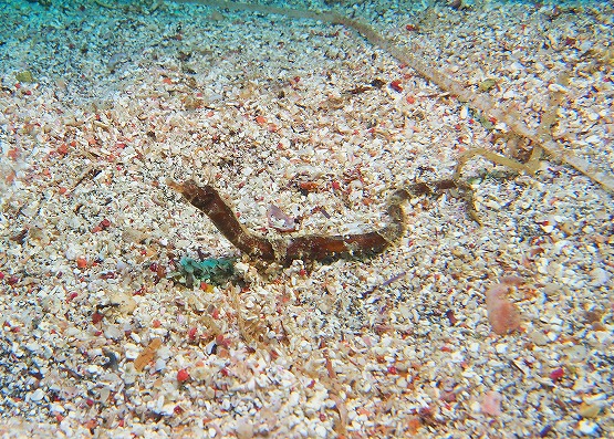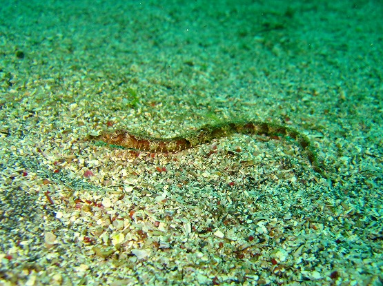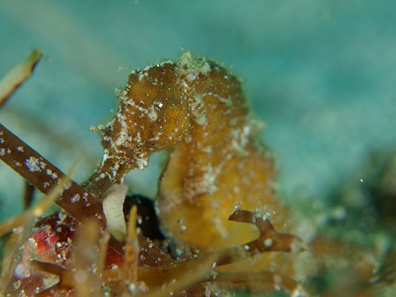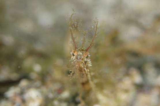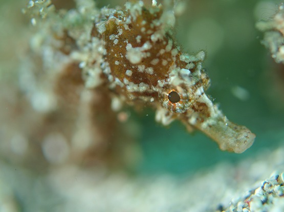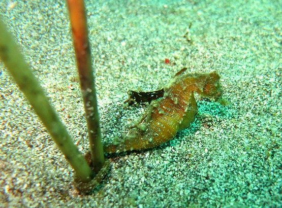 今日も卵保護中のニジギンポやソラスズメダイ、抱卵中のノコギリヨウジ、タツノイトコなど、ネイチャーシーンを中心に紹介しました。砂地ではまたヨウジウオ科の正体不明の魚を見ることが出来ました。人懐っこいというか、ダイバーのアワをえさと間違えているのか、カンパチの若魚がたまにダイバーに近づいてきます。