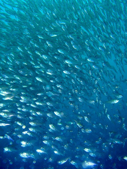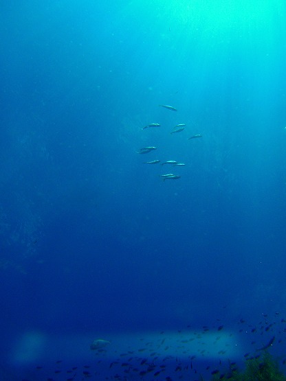 なかなか水温が安定しない船越ですが、今日も途中冷たい潮が入ってきて、25度くらいになりました。湾内は28度くらいあるのですが、3度も下がるとちょっと肌寒い感じがします。