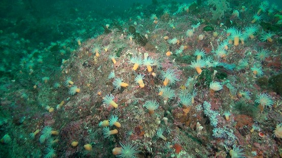 本日はおそらく日本海では2例目となるオオアカヒトデをゲストのかたが撮影されてました。相変らずカワリギンチャクは圧巻!!オオカワリギンチャクは今日もションボリしておりました。ハナダイの仲間もかなり群れてきておりました。