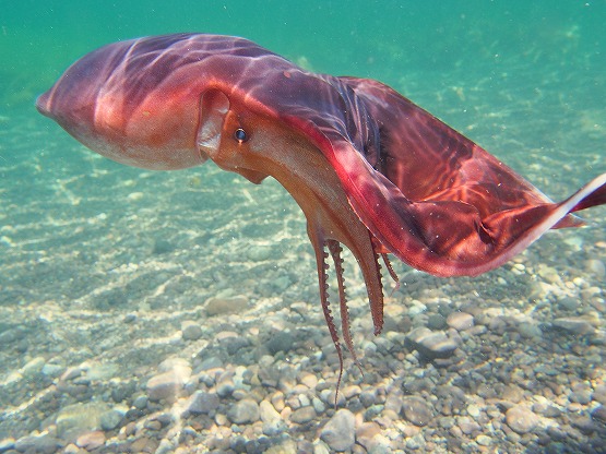 まさにムラサキダコハンター。しかもけっこう元気でマントもまだ健在。こんなに綺麗な個体もめずらしいです。