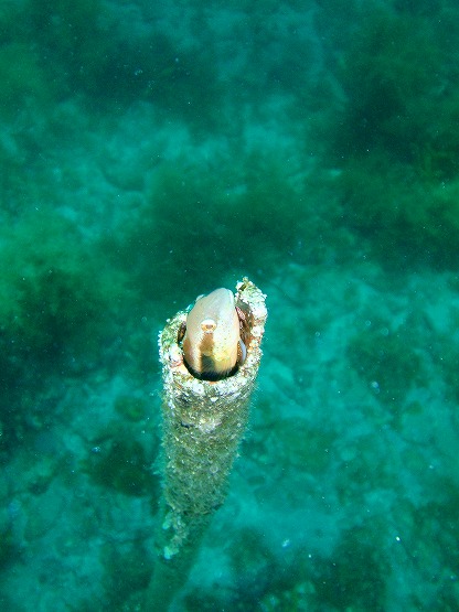 浅場の空き缶に入ってたニジギンポも誰かがおそらく流されないように半分埋めたのでしょうが、中のニジギンポは卵を放棄してどこかえいってしまいました。卵も巻き貝の仲間に食べられていました。こういったダイバーにはもうちょっと謙虚な姿勢で海にせっしてほしいものです。7