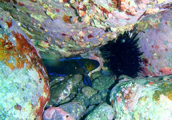 相変らず魚影の濃い船越です。季節来遊の生物達が少しづつ目立つようになってまいりました。海の色も青く、夏っぽい海が続いております。今日も左の瀬と洞窟へ行って来ました。