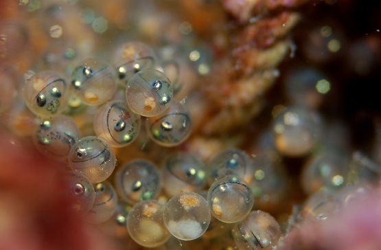 そのかわりといってはなんですが、クジメが卵保護を行っていました。卵もスクスク成長中。あと早いものはあと1週間くらいでしょうか?クミさんの話では、前回よりも卵塊が増えているというおとなんで、まだ産卵する可能性もあります。しばらくはこちらも目がはなせません。
