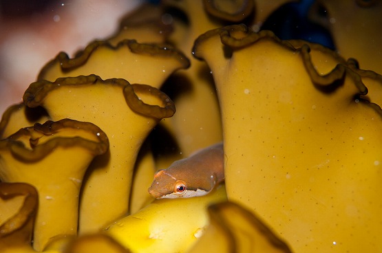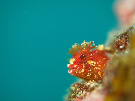 本日は少し風波のある船越でしたが、水中はそれほど底揺れはありませんでした。 そして今日も2本ともダンゴ狙いだったので左の瀬に行きました。ダンゴウオは沢山いたのですが、やはり天使ダンゴはかなり減ってまいりました。模様がやや薄くなってきてる天使ダンゴは数匹見れました。