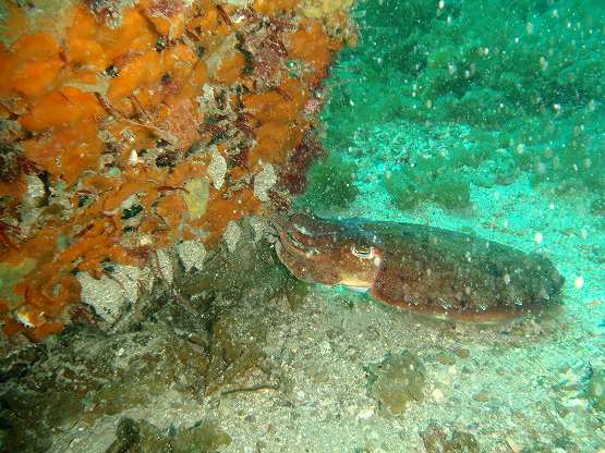 コウイカのメスがいたのですが、産卵していました。オスは確認できなかったんですが、無精卵でしょうか?今年はコウイカの個体数が少ないので、久しぶりに産卵シーンが見れました。
