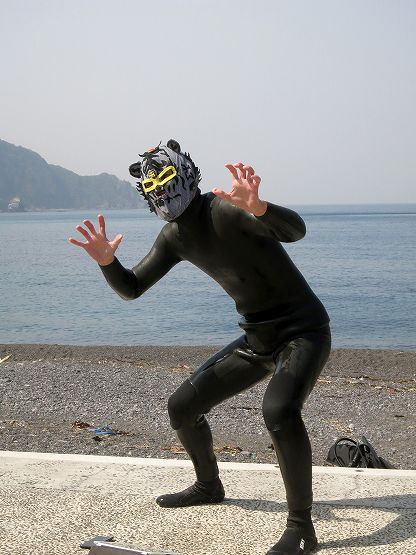 そしてそして、本日はスナイパーsaitouさんの1111本(ポッキー)記念ダイブでした。すごいですねー。船越ケンちゃんの手作り覆面のプレゼントです。相変わらず職人技のアイテムでした。