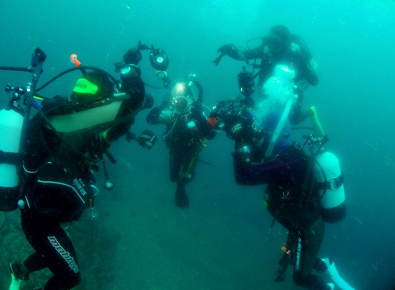 本日は昨日に比べ、ややうねりのある船越でしたが、濃いメンバーで潜ってまいりました。 昨日大量発生していたミズクラゲでしたが、どこに行ってしまったんでしょう?ほとんど見ることはできませんでした。
