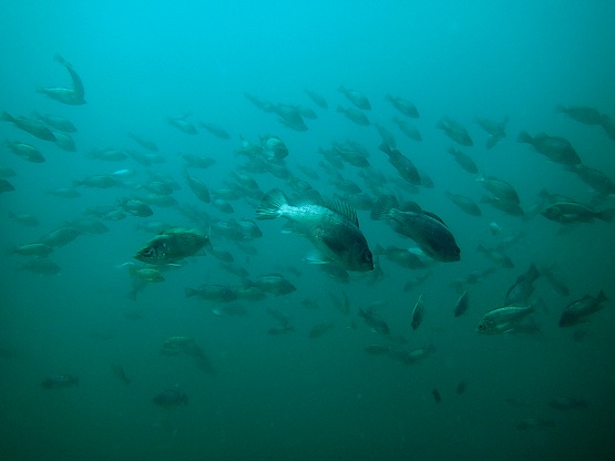 午後からもう少し悪化するかな?と思っていた海況は、むしろ午前中よりうねりがおさまり、水中ではほとんど揺れを感じませんでした。しかし明日はさすがに紫津浦かな?