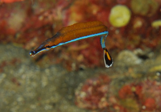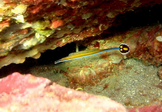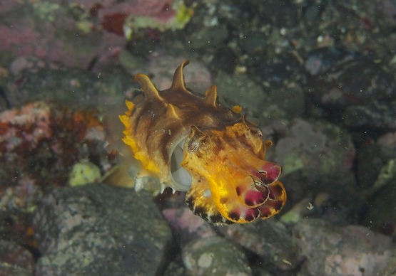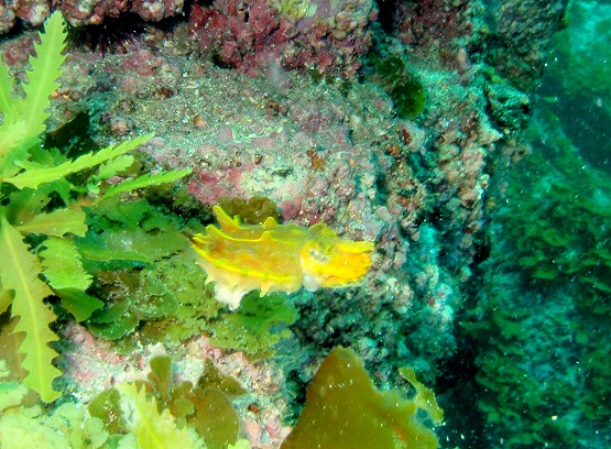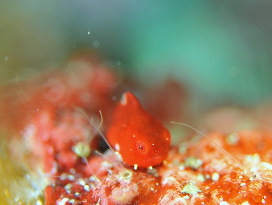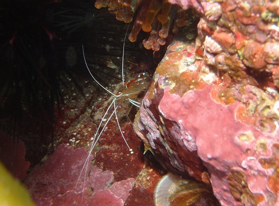 本日は南東の風が昨日から吹いており,ちょっと期待をしてEN。若干底揺れがあり、洞窟内も揺れそうだったので、左の瀬へ2本とも潜ってきました。ボウズニラの仲間やくみさんはゾエア幼生を見ていました。ハナイカは2個体見ることができました。オハグロベラがいい感じに婚姻色になっており、今日はオスのバトルも見ることができました。