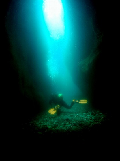 ダンゴウオは本日も健在。いつまでいてくれるんでしょうか。砂地には相変わらずタツノイトコやタツノオトシゴの幼魚などが沢山見れました。そして午後からは洞窟へ。