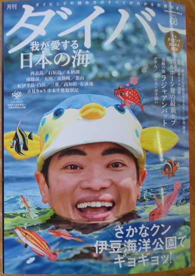 そして今月号月刊ダイバーのページを一枚めくると、なんとkeiさんが青海島で撮影された写真がデカデカと載っていました。掲載されるとは聞いてたんですが、こんなトップで扱われるとはビックリですねー。文章もカッコいいですkeiさん。
