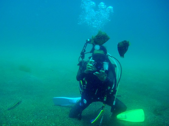 講習チームはオクトパスブリージングや緊急スイミングアセントなどの緊急手順の他、反復練習を行いました。水中遊泳では久々に凪だったので洞窟まで行ってきました。中性浮力もかなり上達しました。もうりっぱなダイバーって感じです。次回はファンダイブに是非来てください。