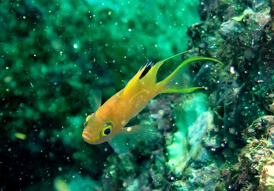 洞窟コースでは白い髭をなびかせているアカシマシラヒゲエビとオトヒメエビのコンビに挨拶し、今日はまったく疲れていないサクラダイの幼魚、先日見たマダコはすべてハッチし終わったようで姿がなくなってしまっていました。