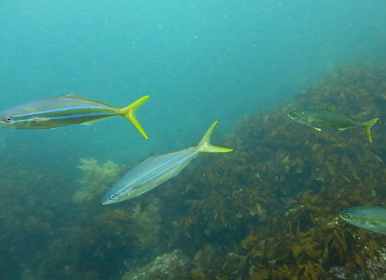 そしてニホンアワサンゴもいよいよヤバくなってきました。数年前の白化の前兆である、骨格むきだしの個体が増えてきました。まだまだ夏は長いので、ひょっとしたらまた全滅の可能性がでてきました。とりあえず一回台風が来るか海が時化ないかぎり水温は下がりそうにありません。ちょっと心配です。しかしながら相変わらず生物がとっても多いです。本日はツムブリが現れてくれました。