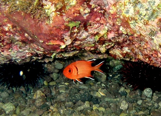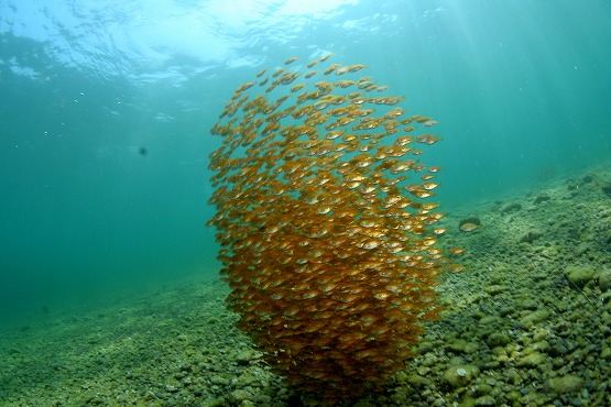 砂地は透明度良好で、ゴンズイ玉があると撮影したくなります。なぜか今年はゴンズイがやたら多いように感じます。他にはナミマツカサ、ナガサキスズメダイ、キジハタ、ダイナンギンポなど見れました。