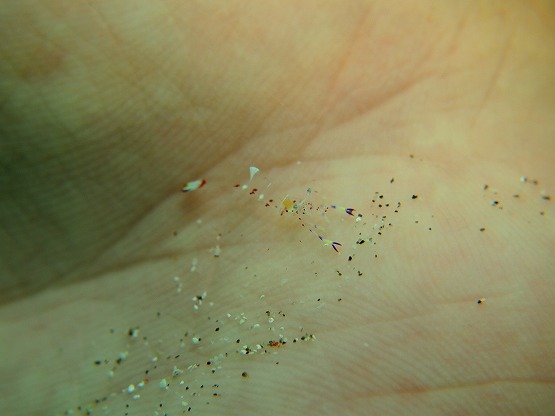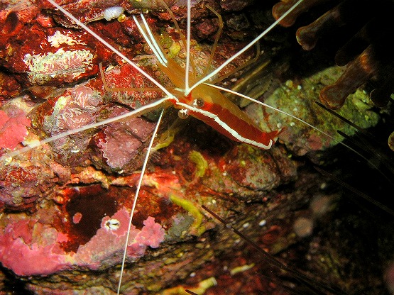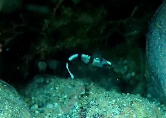 本日は前線の影響か、ややうねりのある船越でした。一本目は左へ行きました。 砂地でなにやら移動中の透明なエビを発見!!超小っちゃかったですがハクセンアカホシカクレエビのようです。いよいよこれからはこういったエビも増えてきそうです。