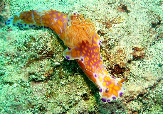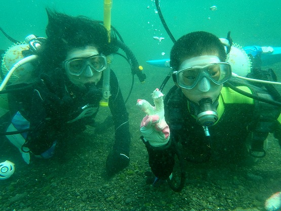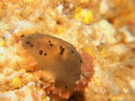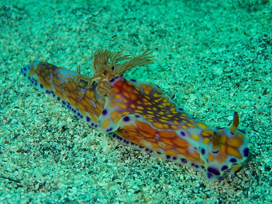 2本目は洞窟へ行きました。洞窟のウミウシはかなり減ってきましたが、巨大なマダラタイプのクロシタナシウミウシを久しぶりに見ることができました。