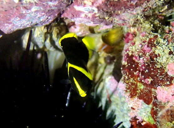 あと、タカサゴヒメジに似てるんですが、モンツキアカヒメジも見ることができました。マダラギンポもかなり個体数が増えてきたほか、様々な季節来遊系が増えてきました。太平洋側では沢山見れるザ・チョウチョウウオですが、日本海ではけっこうレアです。