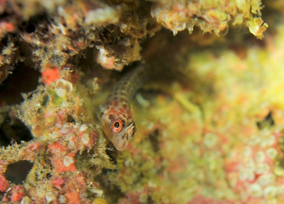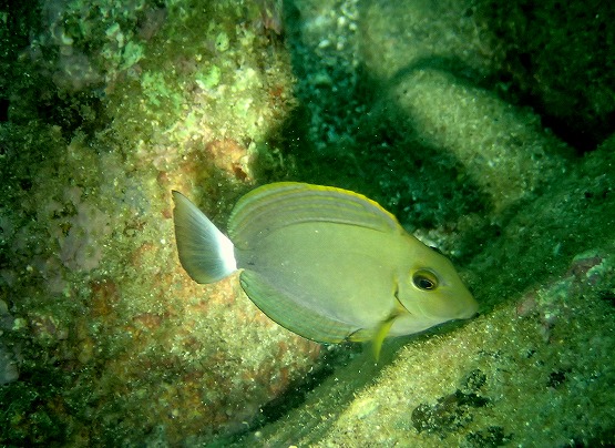 本日はやや風波があったものの、うねり自体は昨日よりは落ちていました。そして今日も午前中はやや透明度が悪かったのですが、午後からはまたクリアな水中になりました。水中はさらにトロピカルな景観になってまいりました。