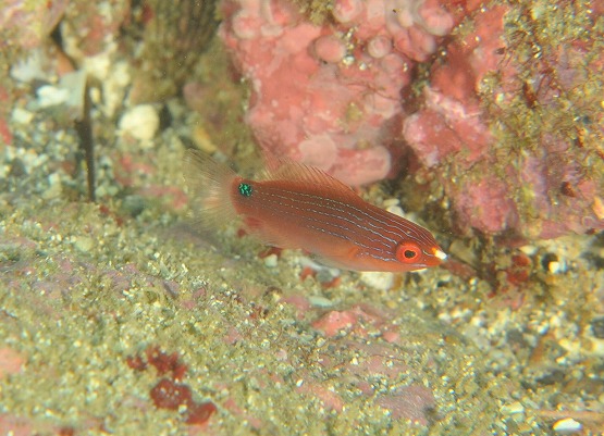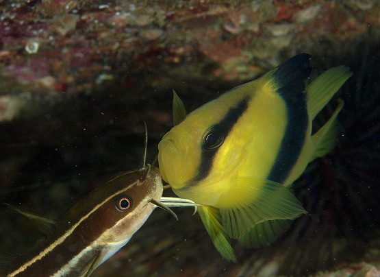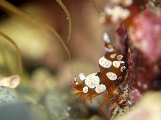 タコベラは今日も沢山みれたのですがコレといった生態行動は見れませんでした。その他はスジアラ、イトヒキベラの幼魚、フトユビシャコ科の一種、イソギンチャクモエビなど見れました。2本目は紫津浦へ入りました。