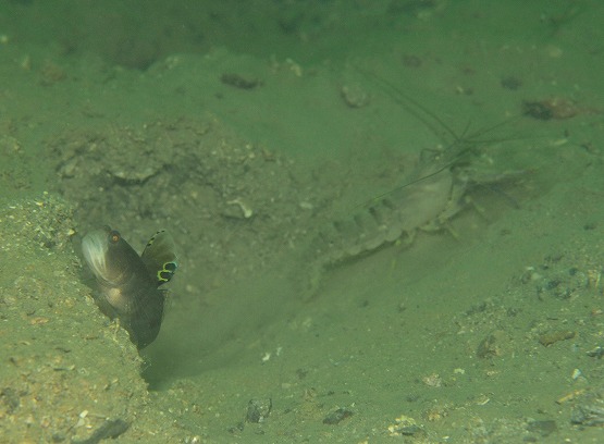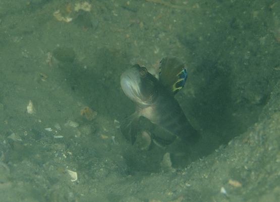 予想通り透明度は激落ちでしたが、ハゼが沢山見れました。カスリハゼとハナハゼ3匹、テッポウエビが一つの巣穴に共生している大所帯も見ることが出来ました。しかしながらこの透明度だとハゼの撮影はちょっときびしかったです。