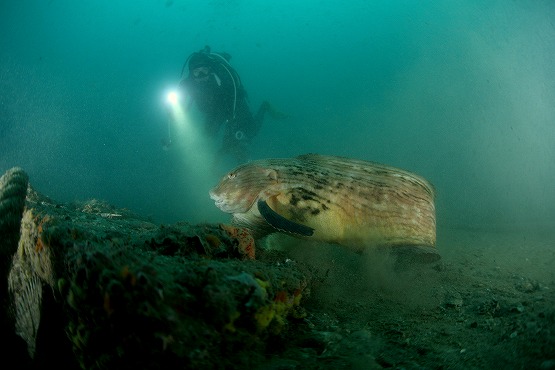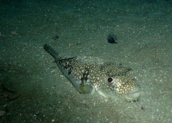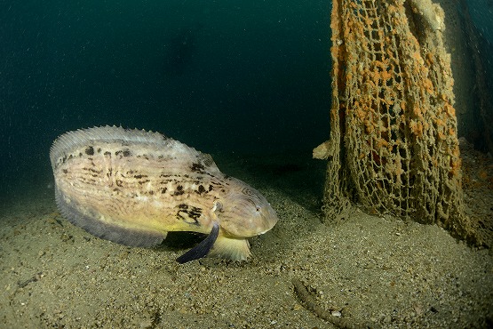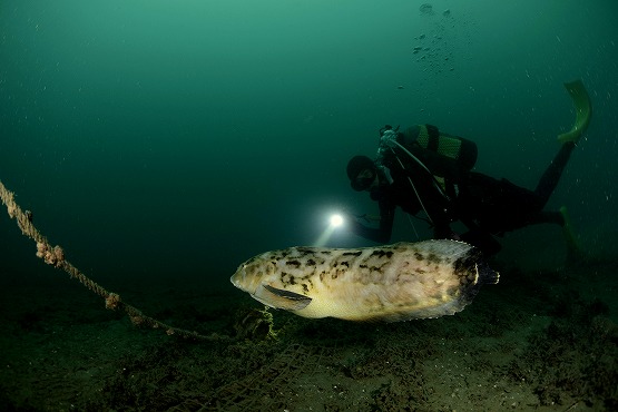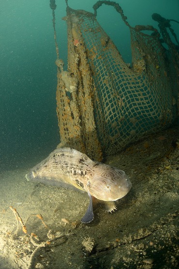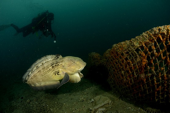 結局網付近には1匹しかおらず、ちょっと離れてる場所で泳いでる個体を5〜6匹見ることができました。アカタチを撮影してると今日も大きなクサウオがよろよろと泳いできました。止まってる方がクサウオに遭遇する確率が高いかもしれませんね。それにしてもちょっとあの作業船はどうにかならないかなー。